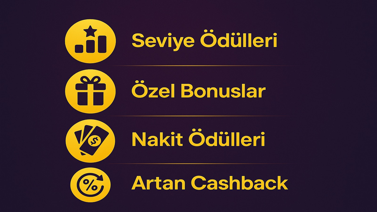 Sadakat puanı toplamak için yapmanız gereken oyunlarda bahis yapmaktır. Nakit ödülleri, puanları katlama, yatırım bonusları, freespinler, hediye puanlar, birikimler ve en önemlisi de cashback bonusundan faydalanabilirsiniz.